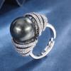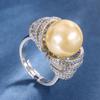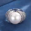 Vintage Exaggerated Large Shell Pearl Ring Zircon Open Live Ring Flower Zircon Ring