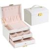 Three Drawer Handheld Jewellery Box Earring Ring Necklace Storage Box PU Leather Jewellery Display Box With Security Key Lock