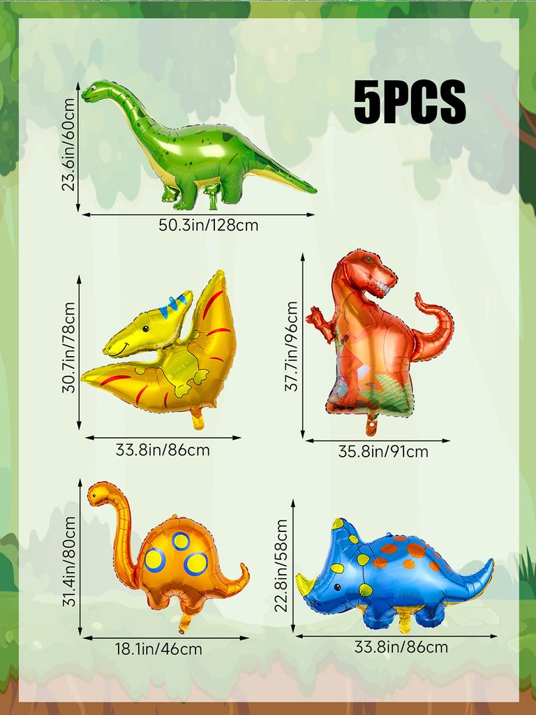 5pcs Dinosaur Foil Balloons, Jurassic Velociraptor Giraffe Animal Theme Birthday Anniversary Party Decoration