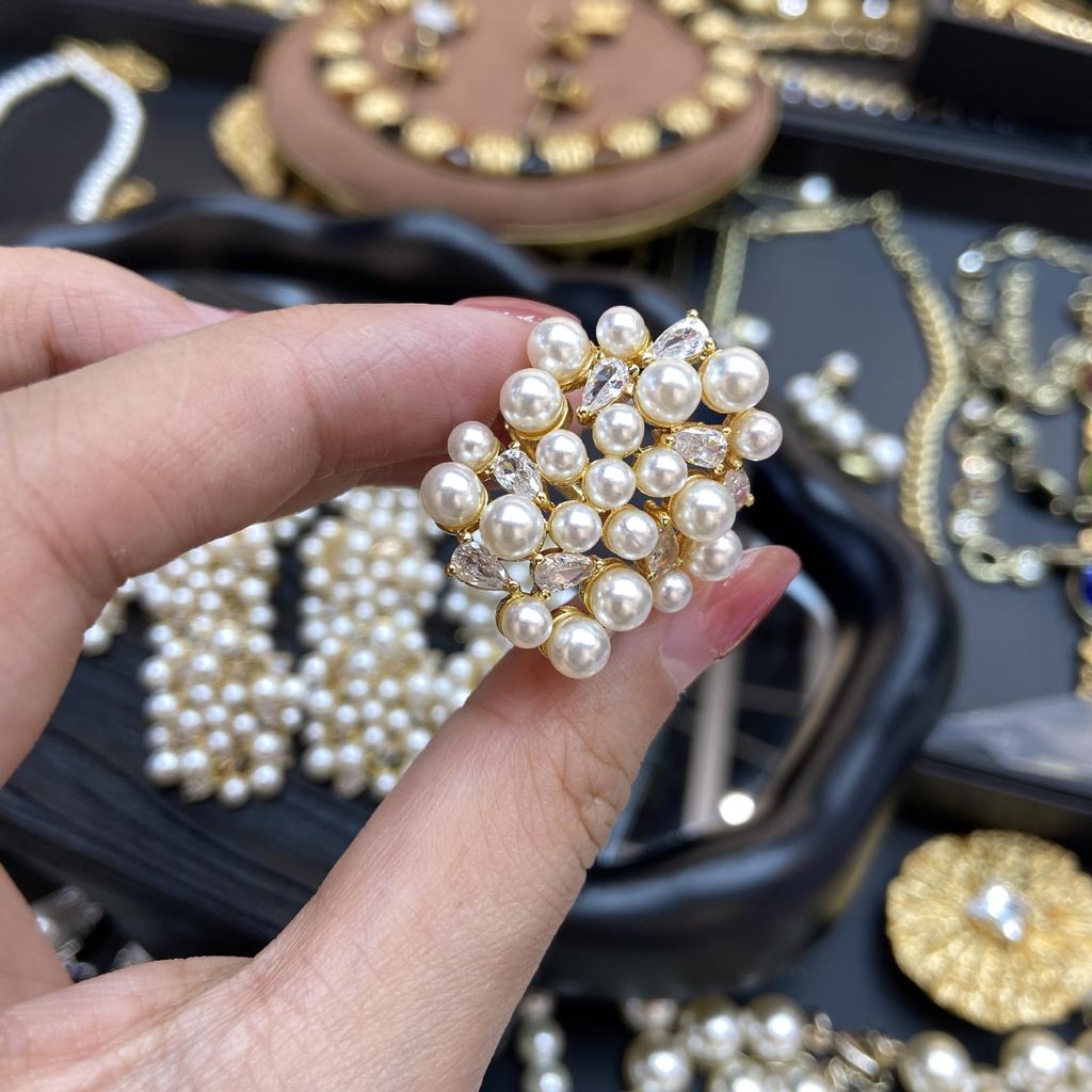 Temperament Elegant Light Luxury Geometric Wide-sided Rhinestone Open Ring Dense Row Inlaid Zircon Pearl Ring Ring Ring
