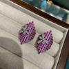 Fashion Popular Full Diamond Red Corundum Rhombus Ring Rose Red Diamond Small Flower Stud Earrings Copper Plated 18K Open Ring