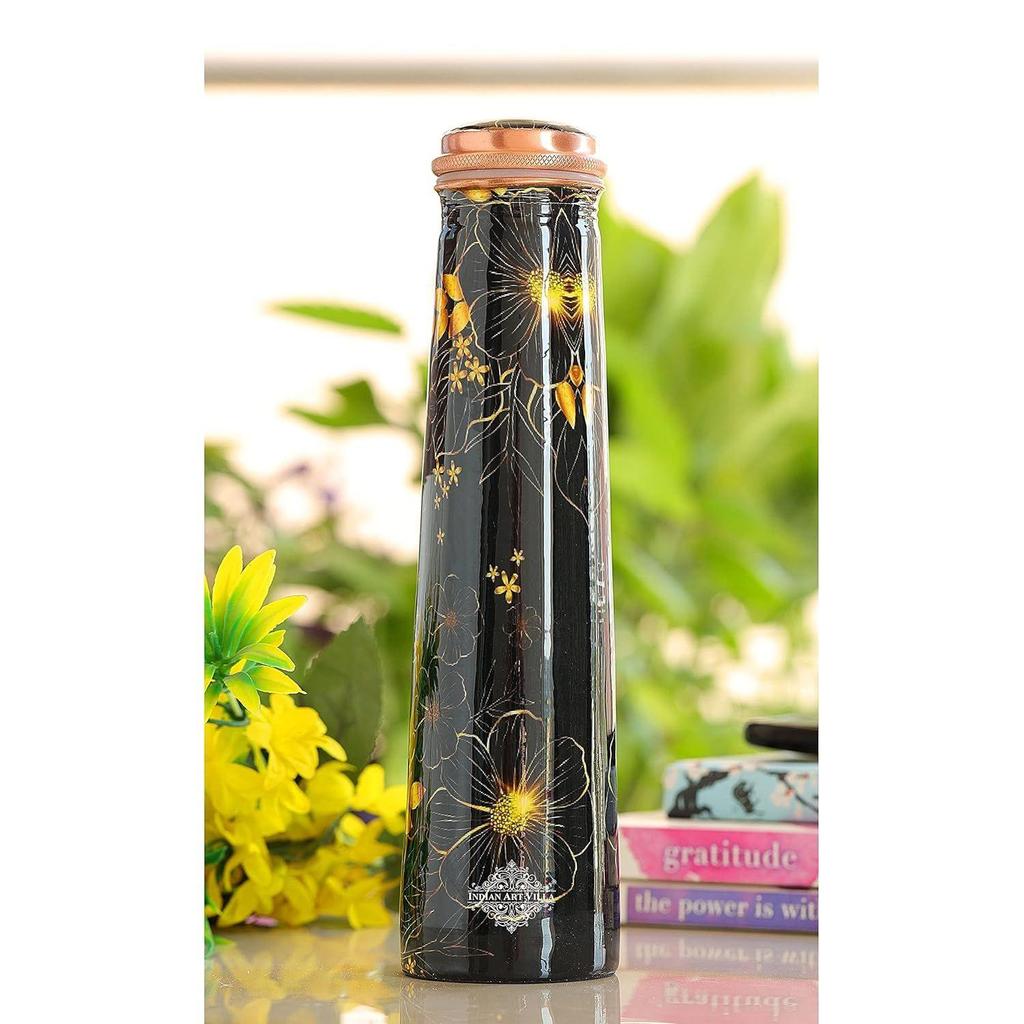 Copper Tube Slim Bottle In Black Floral Print, Volume - 750 ML, Pack of 1
