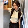 Polka Dot Contrast Stitching Round Neck Short-sleeved T-shirt for Women Summer New Style Bow Embroidered Right Shoulder Short Top