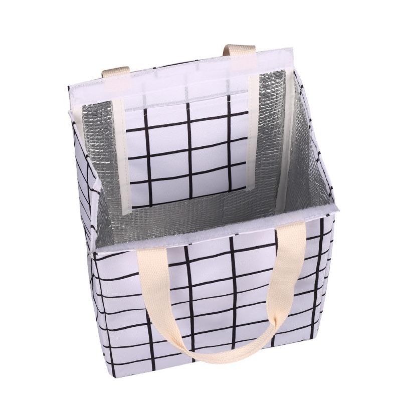 1pc Simple Lattice Pattern Lunch Storage Handbag Waterproof Aluminum Foil Lightweight Insulated Picnic Bag For Women Men