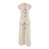 Women Causal Waistcoat Trousers Suit Spring V-neck Sleeveless Single Breasted Vest High Waist Wide Leg Pants Commute Sets
