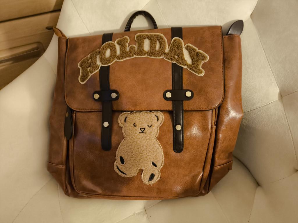 Retro Backpack Women Letter Bear Print Commuter Bag Large Capacity Student School Bag