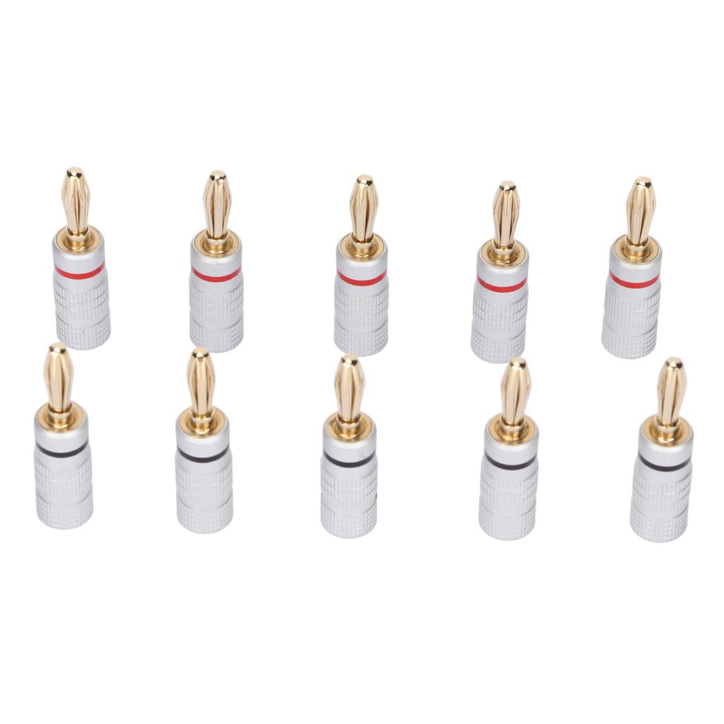 10Pcs Sound Banana Plug 24k Gold Dual Screw Lock Speaker Connector for Speaker Wires Home Theater