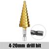 Hss Steel Titanium Coated Step Drill Bits 3-12mm 4-12mm 4-20mm Step Cone Cutting Tools Steel Wood Metal Drilling Power Set