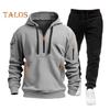 2Pcs/Set Men Sweatshirt Pants Set Hooded Drawstring Long Sleeve Sport Tops Elastic Waist Long Pants Set Solid Color Baggy Tracksuit