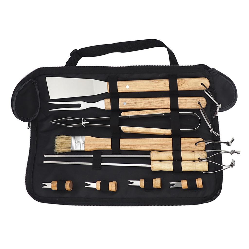 10PCS Grilling Tool Set Stainless Steel with Wood Handle Grill Utensils for Picnic Barbecue