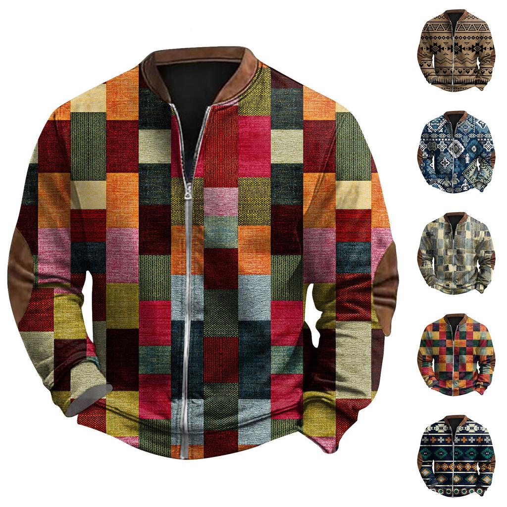 Men'S Retro Casual Sportswear With Open Zipper Sweatshirt Jacket