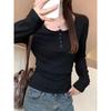 Autumn's Stunning Pure Lust Lace Slimming Plus Velvet Bottoming Shirt for Women with Long-sleeved T-shirt Right Shoulder Square Neck Top