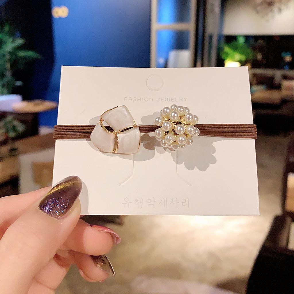 Elastic Hair Bands False Pearls Fashionable Hair Ties Ropes Hair Accessories for GirlsIvory White