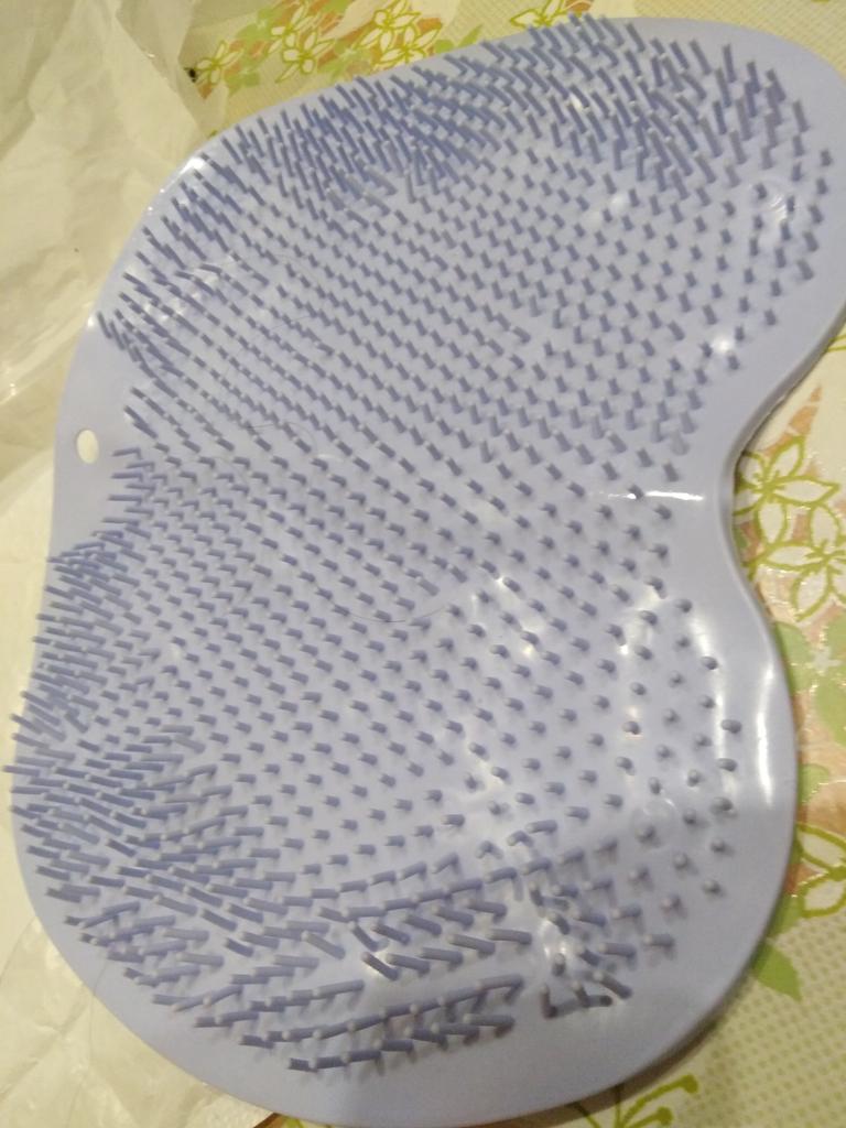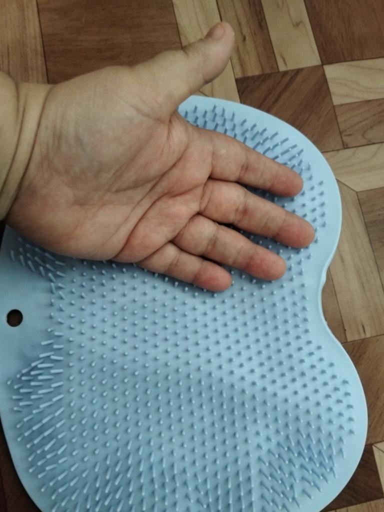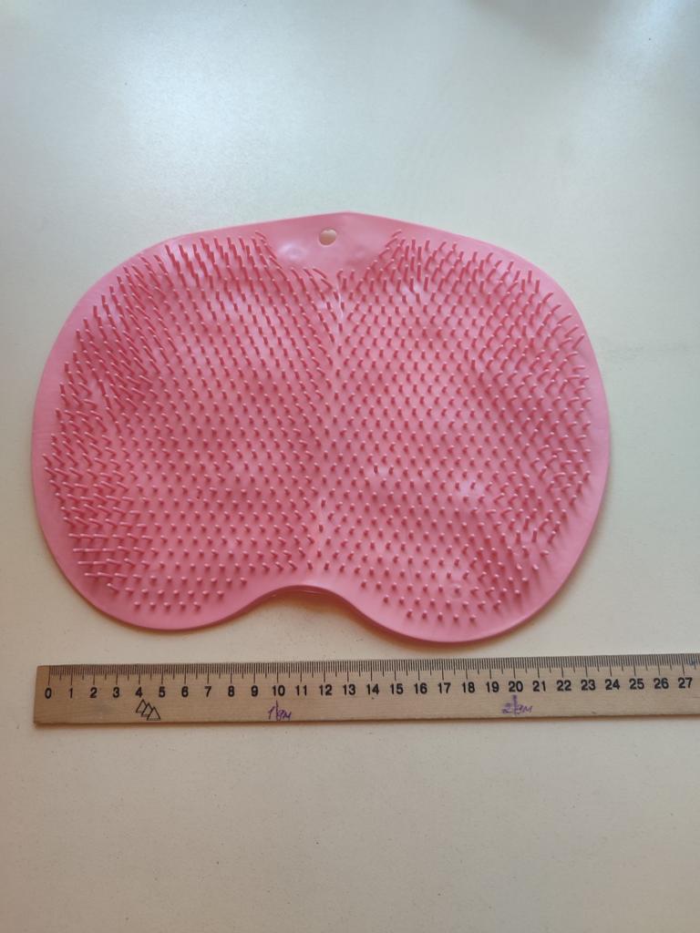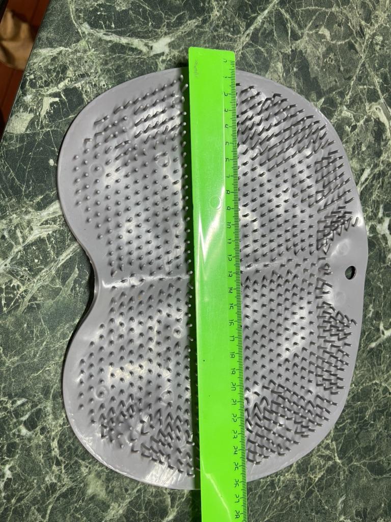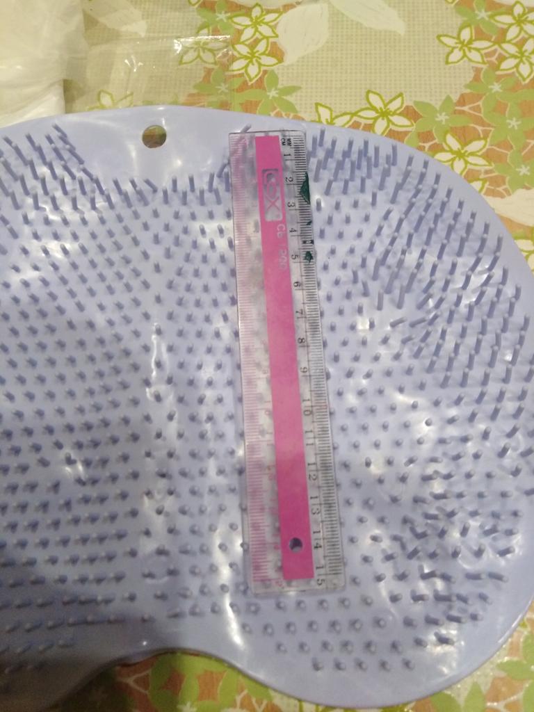 The product description states the size is 25x30 cm. In reality, it's 19x27. For one foot, maybe? And the color is some kind of grayish instead of blue. The bristles are soft, no massage will result. I filed for compensation, they returned it with points.