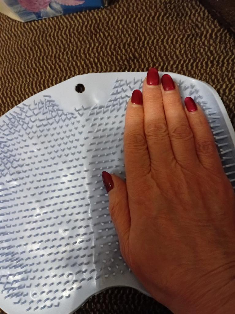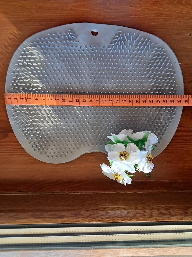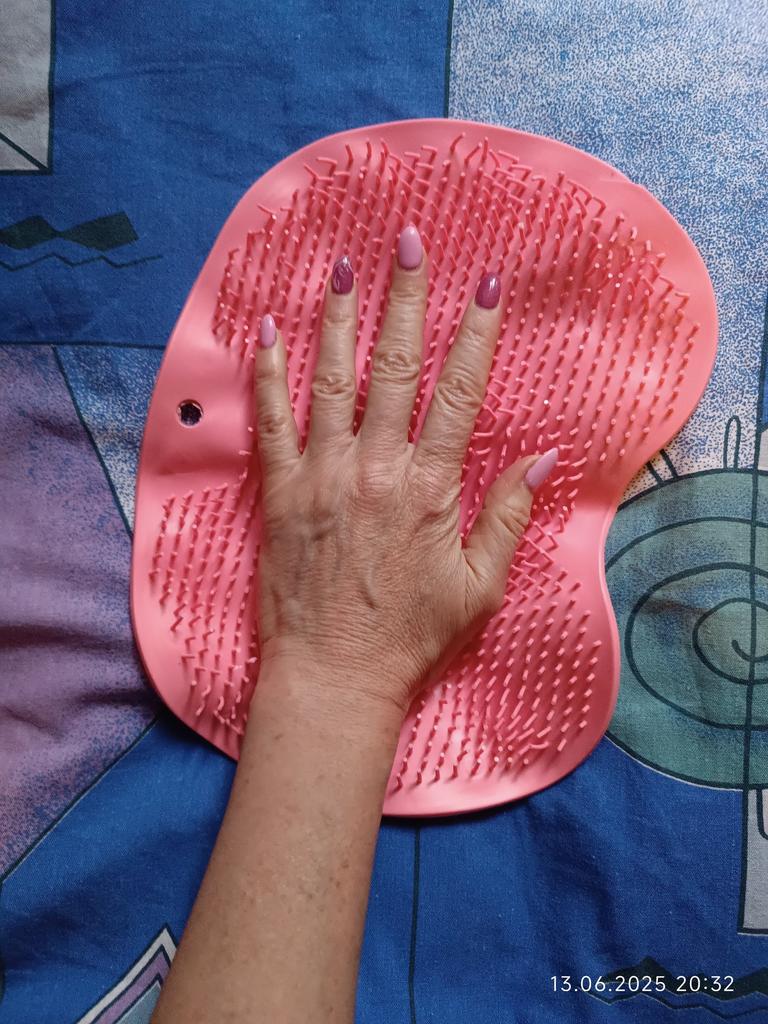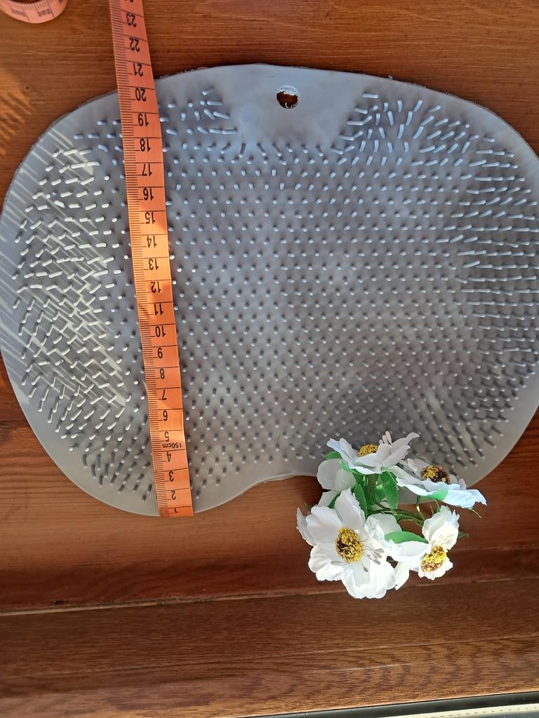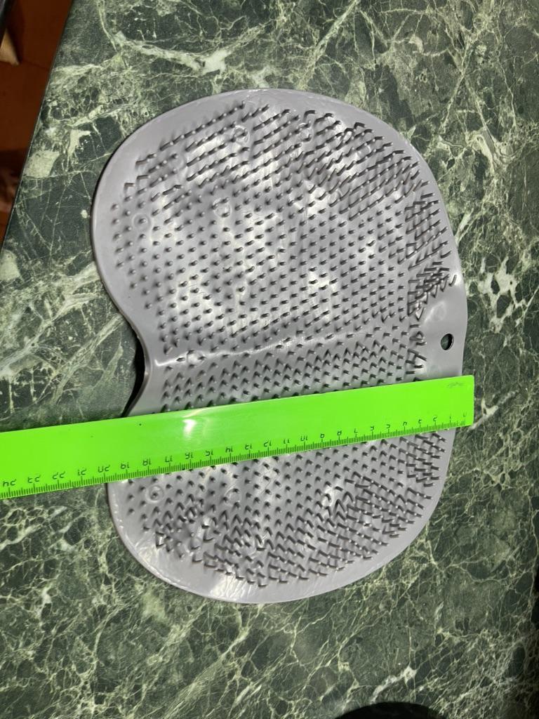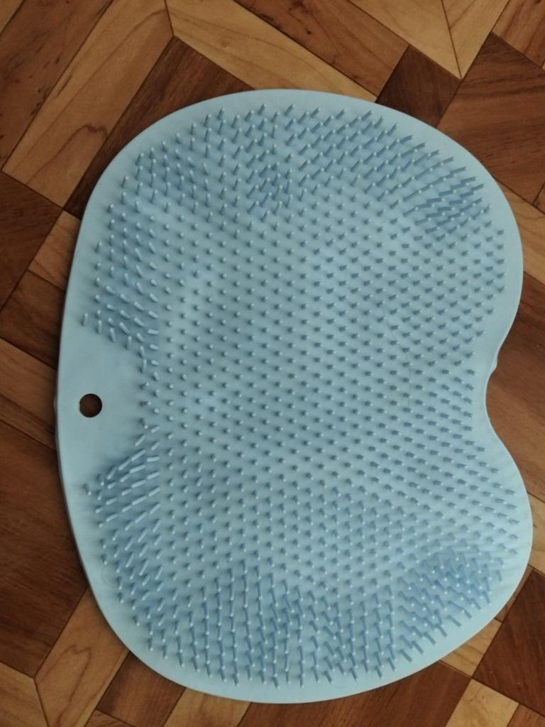 The product description states the size is 25x30 cm. In reality, it's 19x27. For one foot, maybe? And the color is some kind of grayish instead of blue. The bristles are soft, no massage will result. I filed for compensation, they returned it with points.