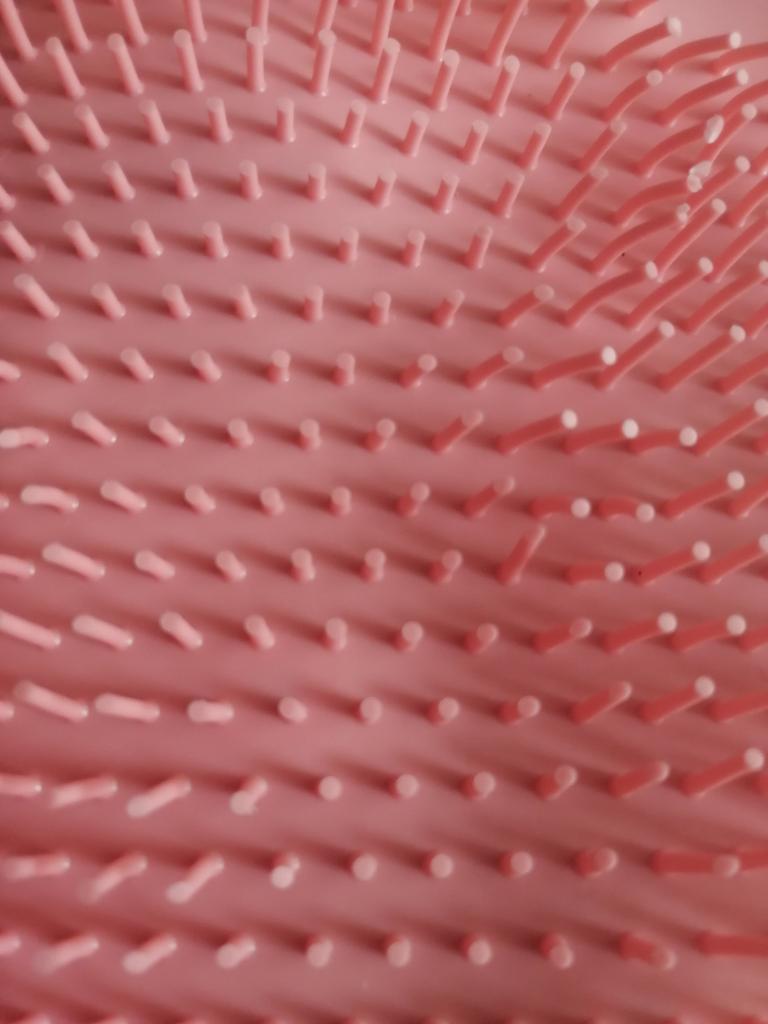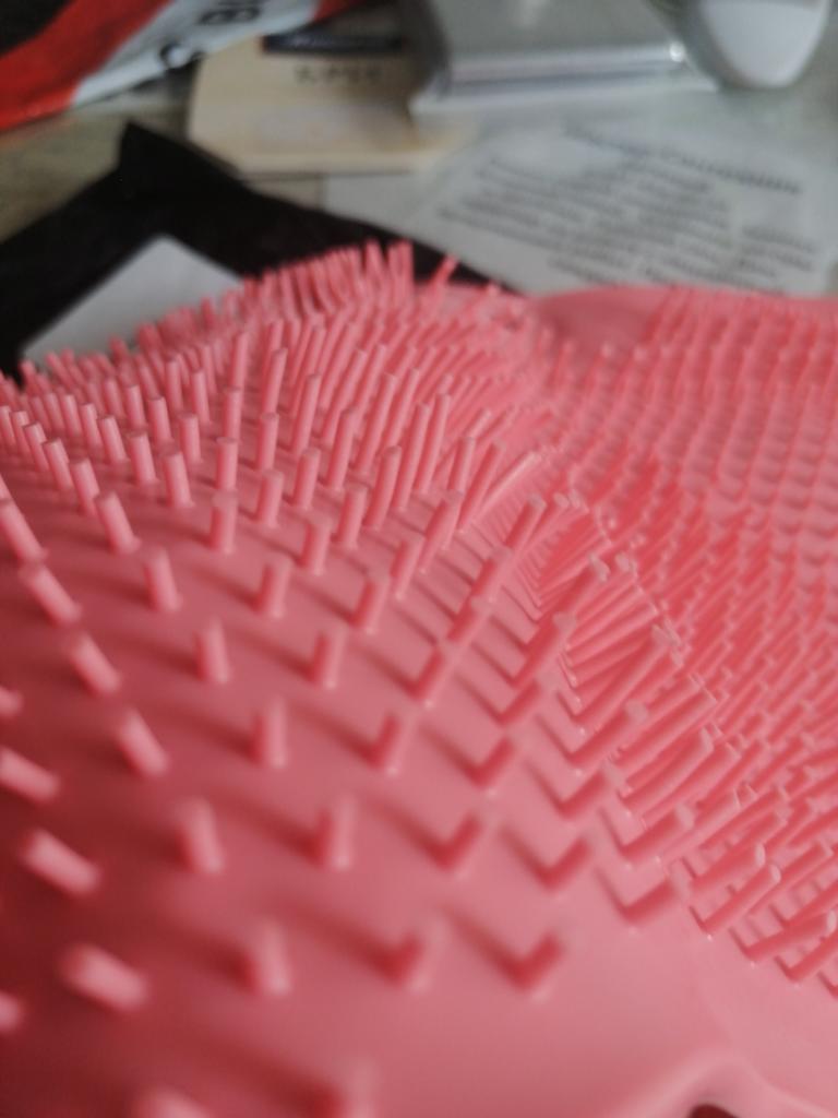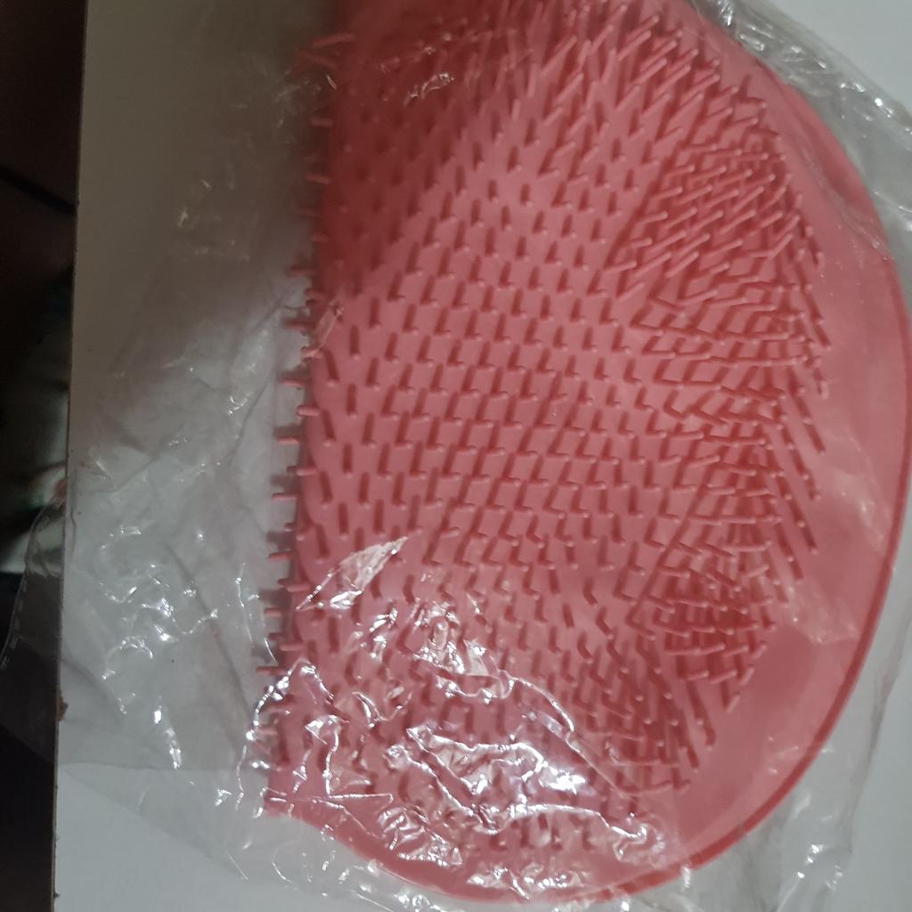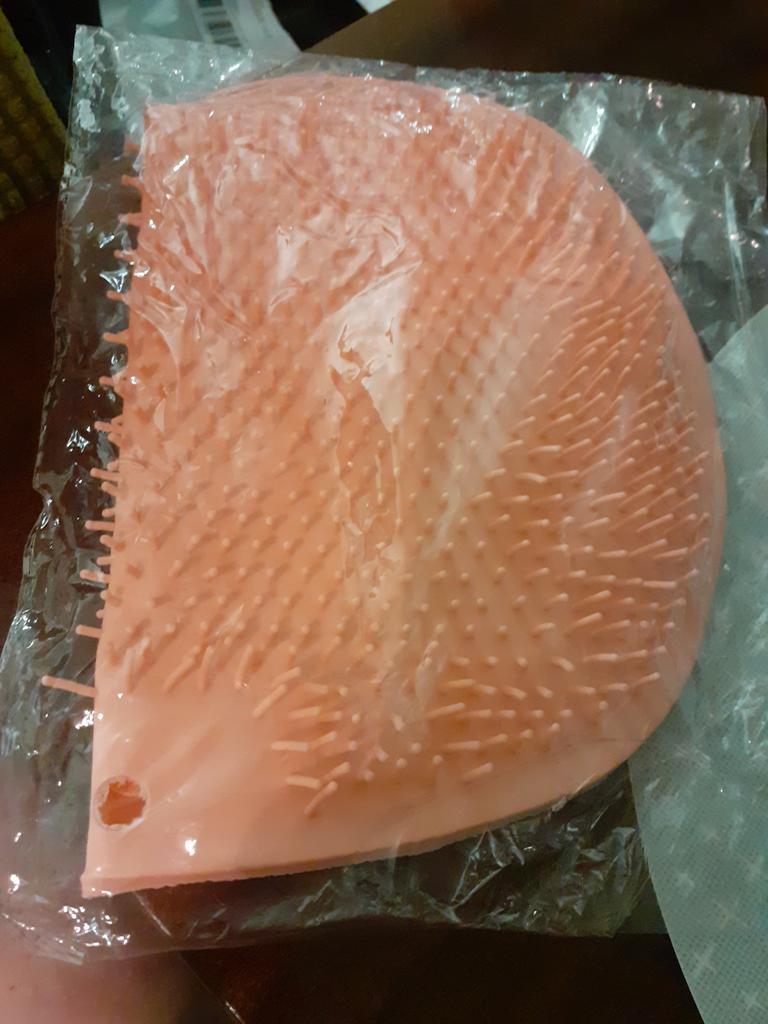 I expected it to be silicone with long bristles, but it's plastic, with stiff and sparse bristles.