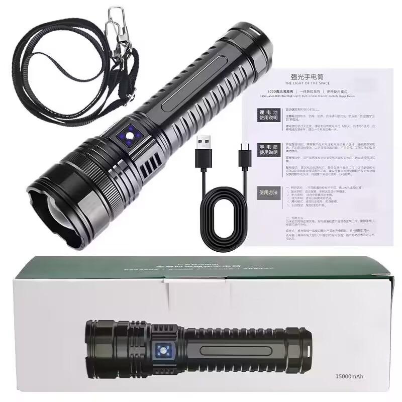 10000LM Penetrating Sky Cannon Ultra Long Range Burst Bright Flashlight High-power 15000mah Built-in Battery Emergency Spotlight