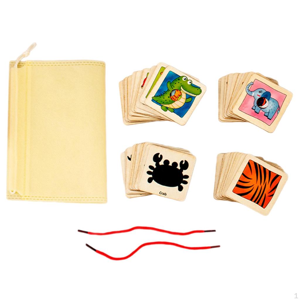 - 【Educational Toys】: Each wooden card has a hole, and children can use ropes to connect the animal cards together for a rope threading game.