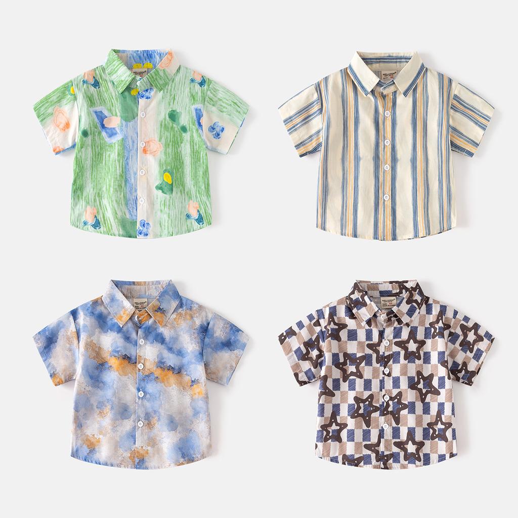 Children's Short-sleeved Shirts Summer Trend Fashion Boys Fried Street Printing Foreign Style Women's Treasure Shirt Children's Clothing