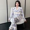 Pajamas for Women Spring and Autumn Ice Silk Long-sleeved Trousers Two-piece Set Simple Casual Home Wear Set