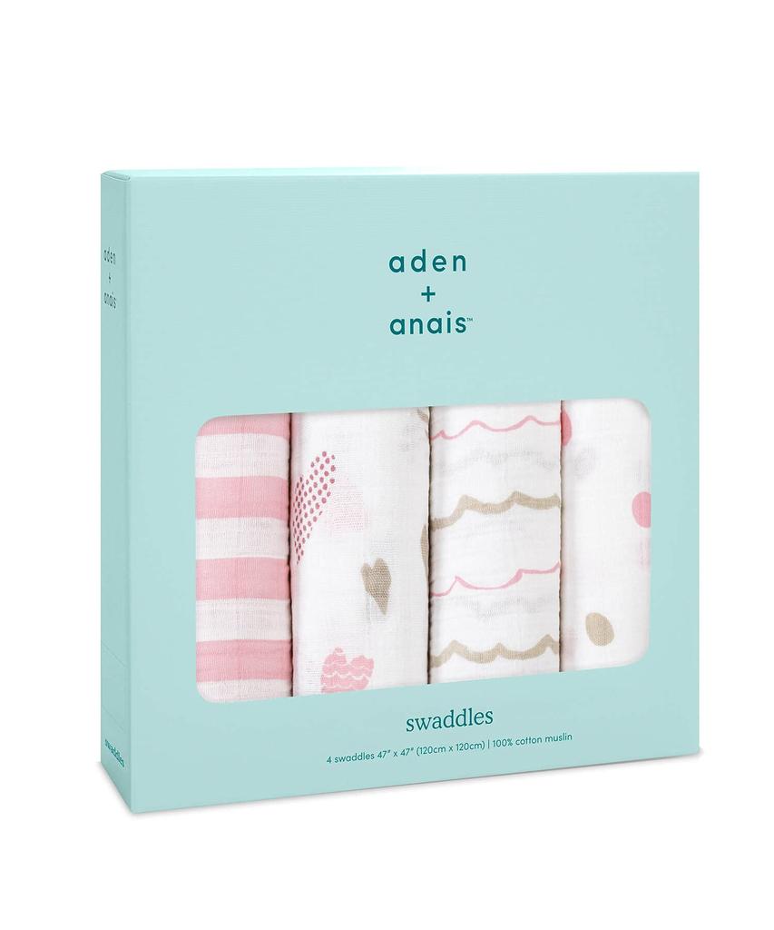 Aden Anais Swaddle Gauze Baby Genuine Product Aden Anais Swaddle Set of 4 Heart Breaker Muslin 120 X 120cm Aiden and Anai Swaddle Baby Newborn 2045 +