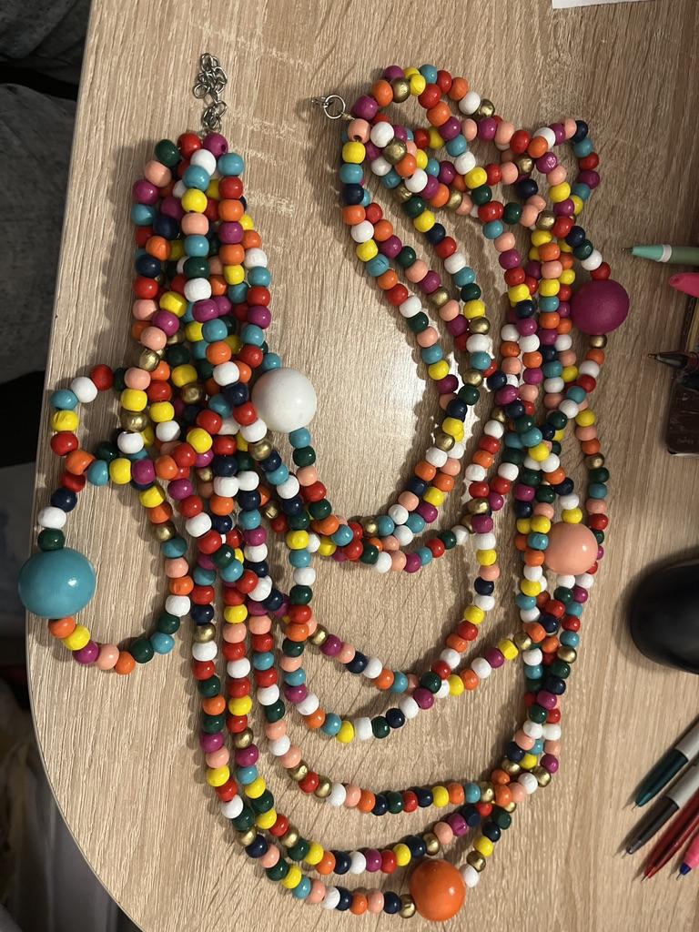 Exaggerated Personality Atmosphere Round Wooden Beads Multi-Layer Pendant Collarbone Chain Fashionable Exquisite Versatile Necklace Women