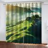 2PC Nature Landscape Theme Forest River Curtains for Bedroom, Balcony, Living Room, Green Forest Print Curtain Window Drape
