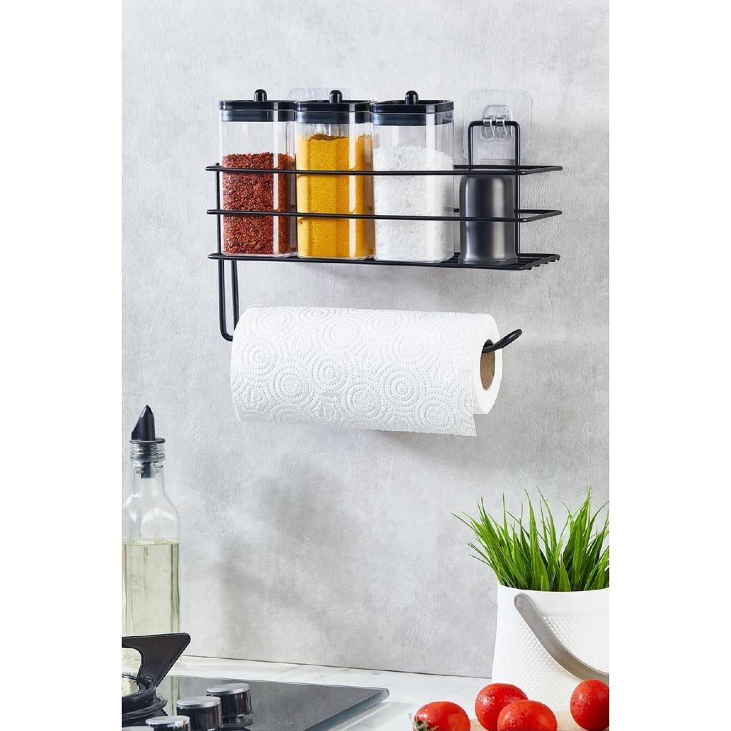 Adhesive Kitchen Organizer Organizer Shelf With Roll Paper Towel Holder Black 962