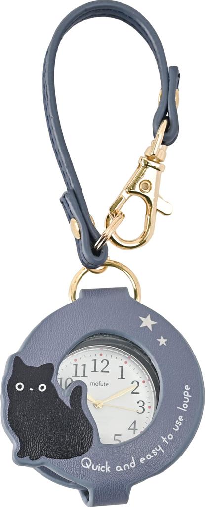 Pocket Watch Field Work Analog Loupe Included 2x Magnification with Strap Bag Charm Strap Watch Anipe Kuroneko Navy [Field Work] Women's MKK3017-5