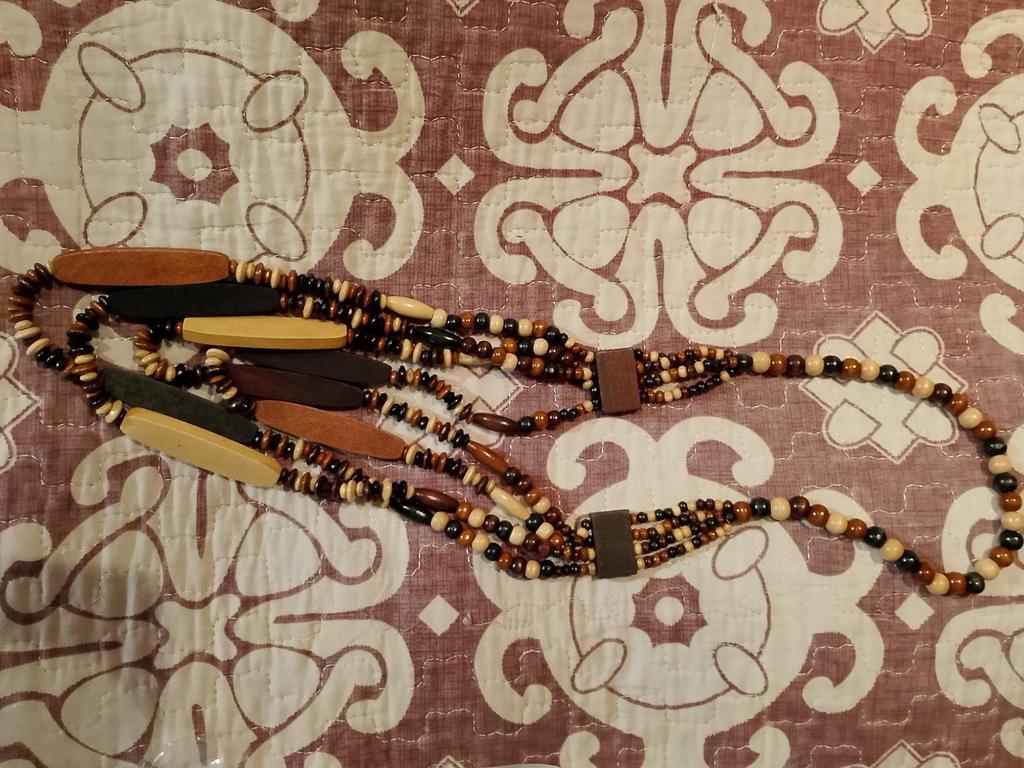 Ethnic Style Geometric Wooden Beaded Necklace with Multi-Layer Sweater Chain