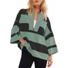 Women's Oversized Striped Shirt Half Zip Sweatshirt Patchwork V Neck Top Casual Loose Pullover