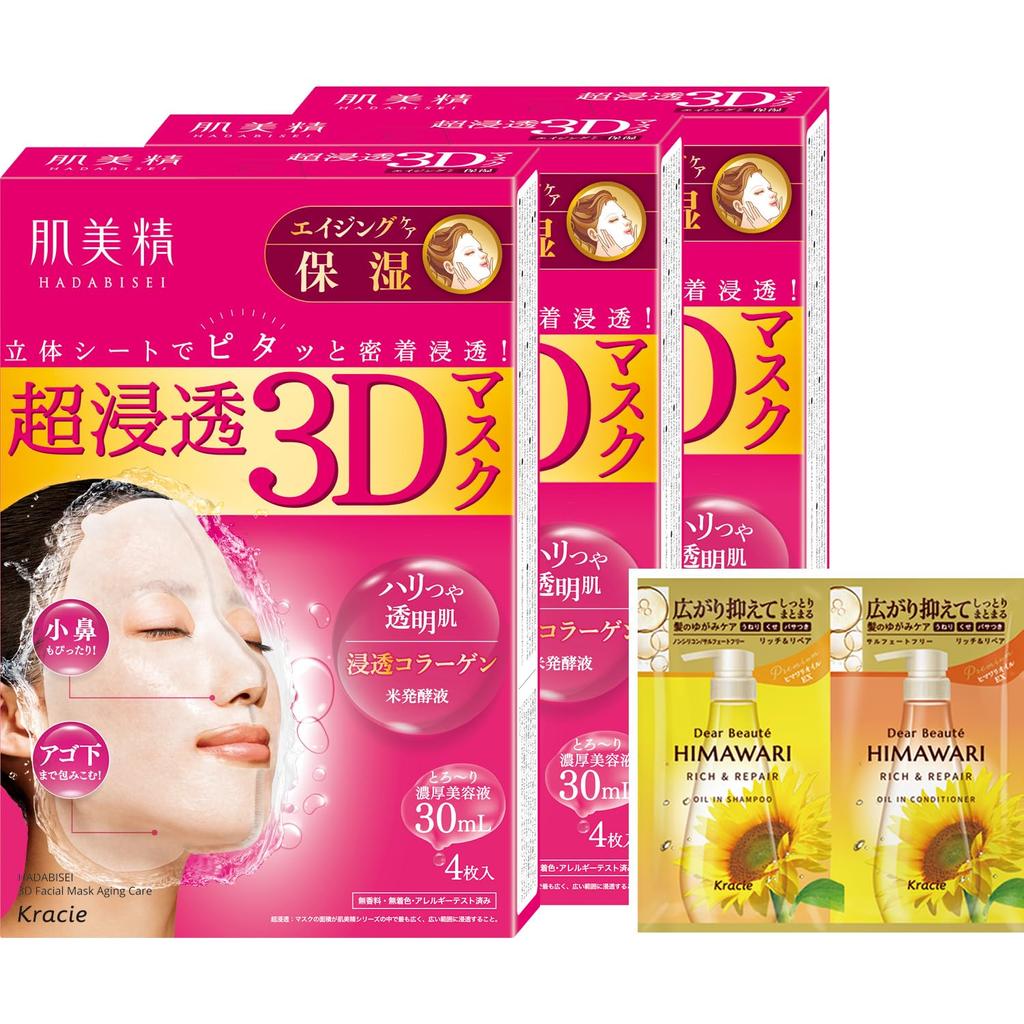 Hadabisei Super Penetrating 3D Mask Aging Care Moisturizing 4 Pieces X 3 Set with Bonus Serum Skin Care Sheet Mask Sheet Pack Face Pack Pack