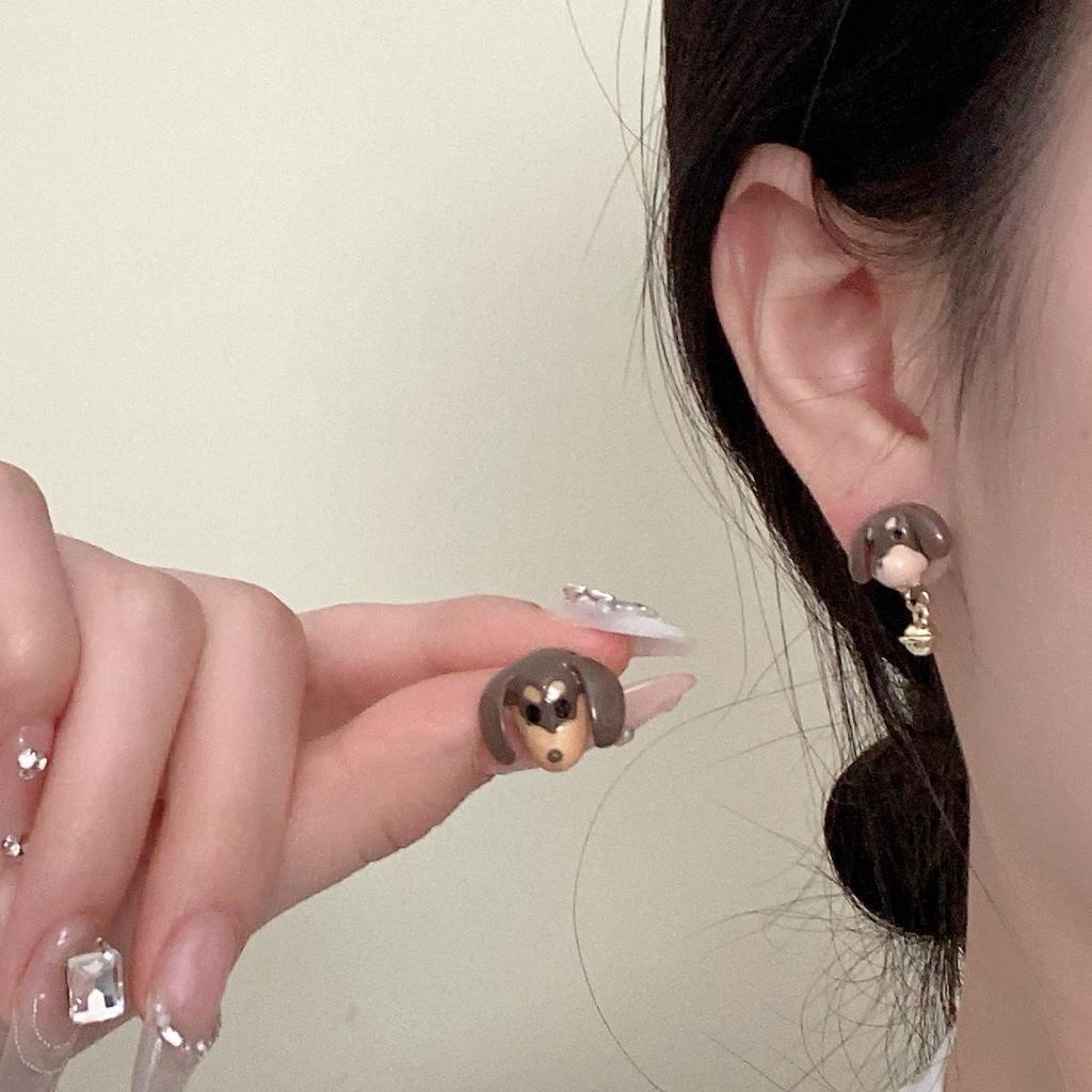 Cute and Stylish Cartoon Dachshund Earrings for Women - Coffee-Colored, Exquisite, Unique Design, Versatile Fashion Accessory