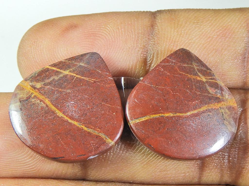 30Cts.Natural Red Jasper Matched Pair Pear Cabochon Gemstone 20X20X04 MM SK-235