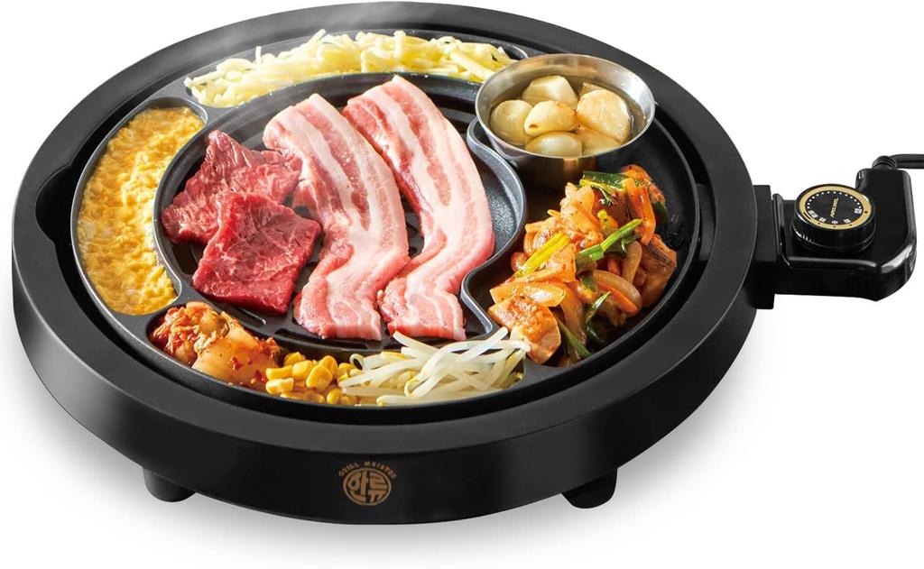 A new yakiniku plate "Grill Meister" inspired by Korean yakiniku restaurants - Comes with a 30-day extended warranty! ・You can grill various ingredients such as meat, cheese, vegetables, kimchi, garlic, etc. on the 6-part plate. ・There is a high temperature/low temperature area, so you can grill according to the ingredients. ・Meat By removing excess fat, there is less smoke and you can bake healthier.