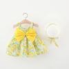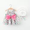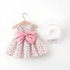 A749 Summer Baby Girl Princess Dress with Big Bow & Flower Skirt, Includes Hat, for Ages 1-4