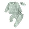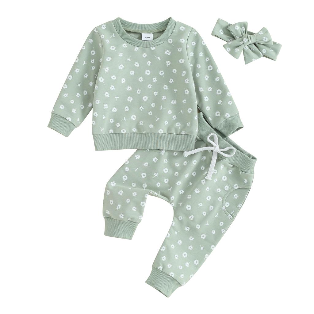 Baby Girls Outfit, Flower Print Long Sleeve Crew Neck Sweatshirt Sweatpants Headband Fall Outfit