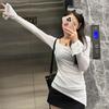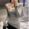 2025 Women U-Neck Long Sleeve T-Shirt Summer New Slim Repair Flared Solid Color Sexy Tops