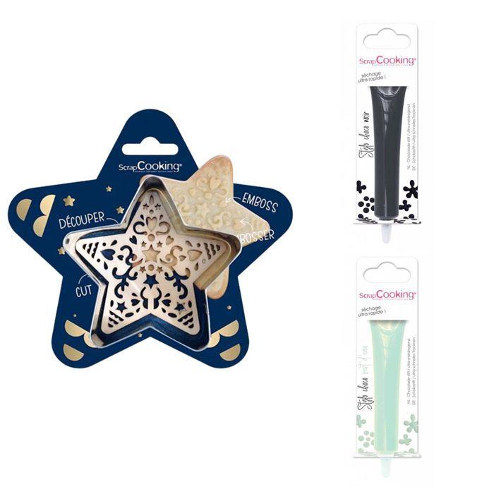Star Embossed Biscuit Kit + 2 Dark Chocolate and Sea Green Pens