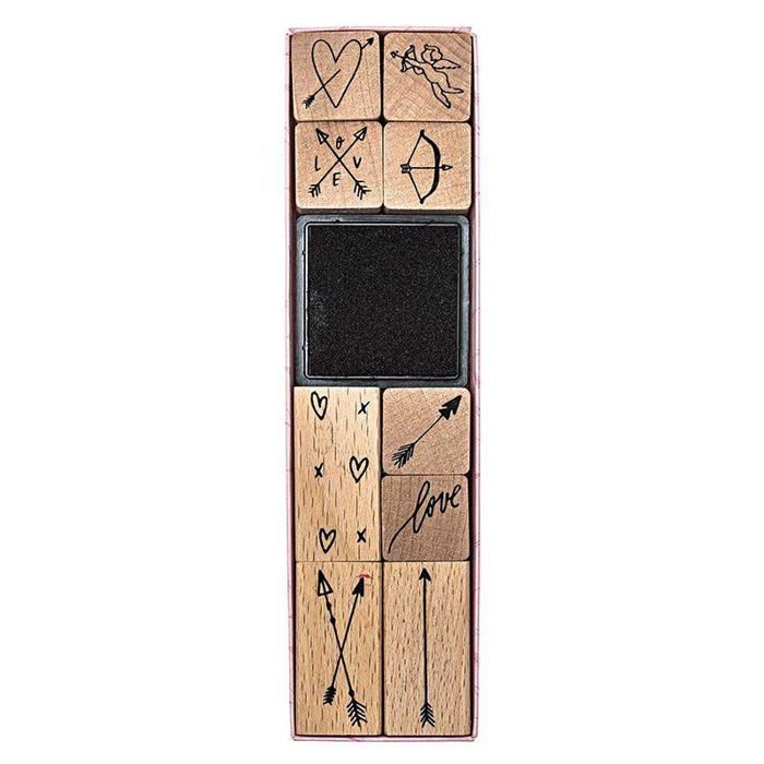 9 tampons bois avec encreur - Flèches et Amour