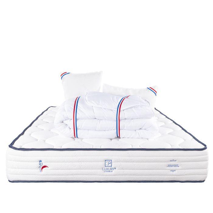 Matelas 160x200 cm,Patriote,27cm,Ressorts Ensachés,mémoire de forme,Indépen. Du Couchage,Soutien ferme + 2 Oreillers + Couette