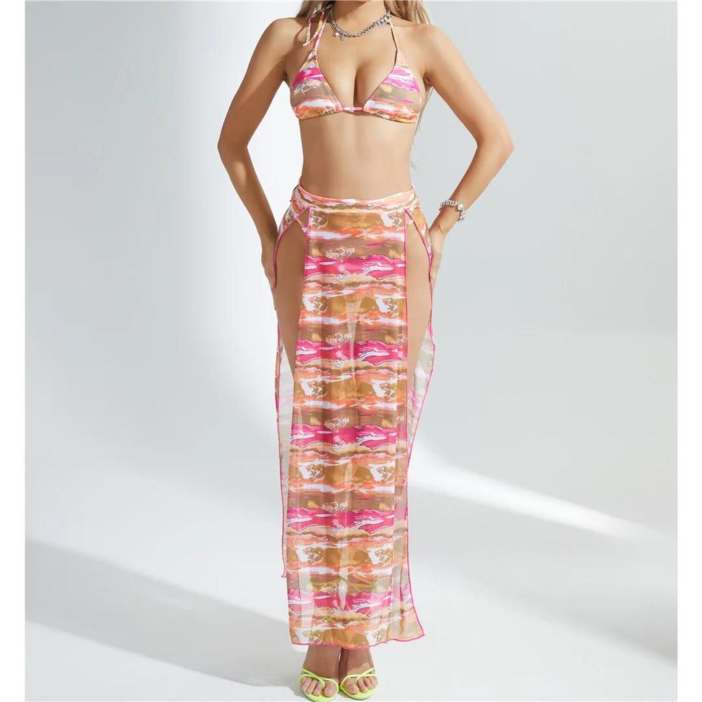 Sexy Printed Halter With Long Skirt Bikini Female Swimsuit Women Swimwear Three-pieces Bikini Set Bather Bathing Suit Swim