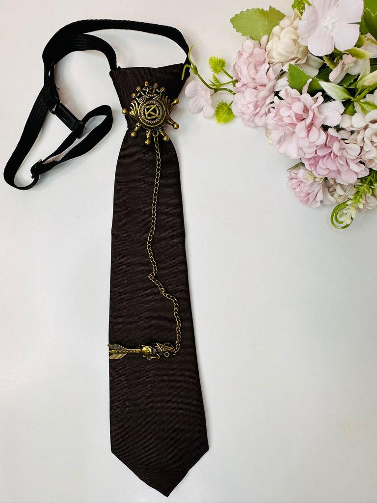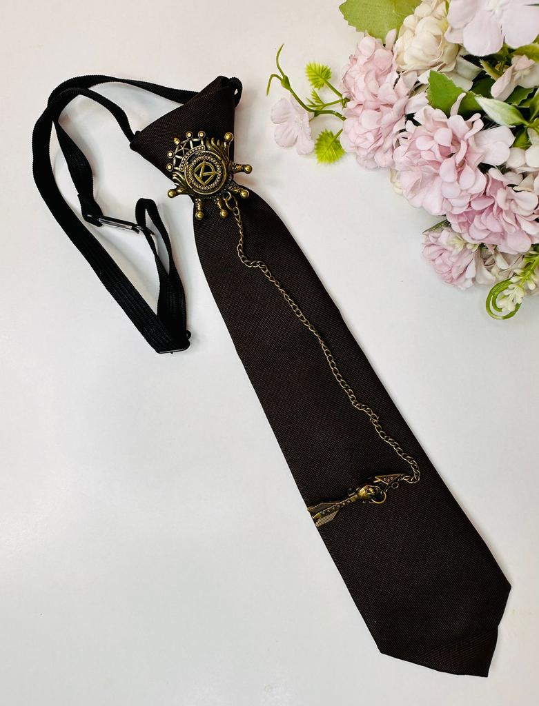 Retro Brown Versatile Knot-Free Tie Jk College Style Metal Chain Decorative Personalized Casual Tie