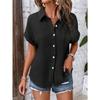 Summer Women's Shirt Solid Color Casual Bat Sleeve Button Up Shirt for Women