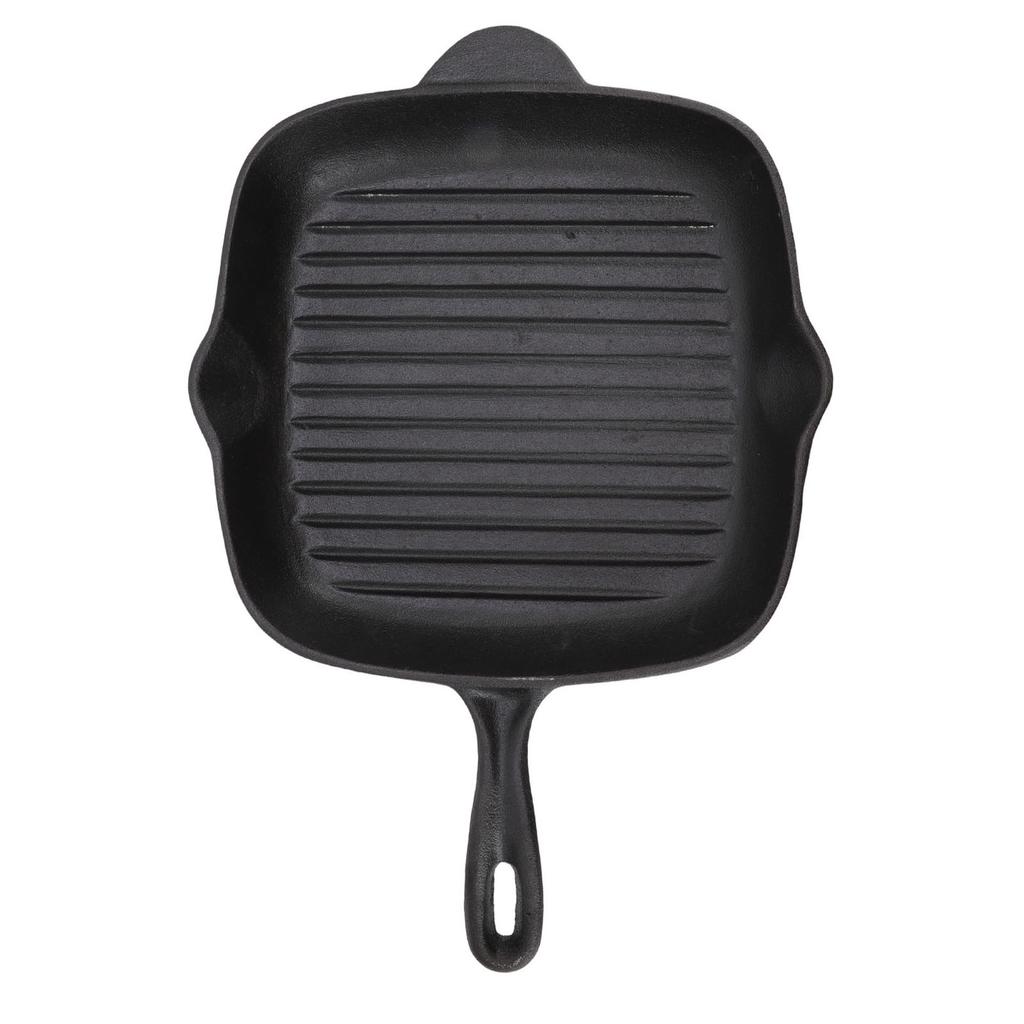 Cast Iron Grill Pan Large Capacity Double Outlet Quadrate Steak Bacon Pan for Home Camping Panic