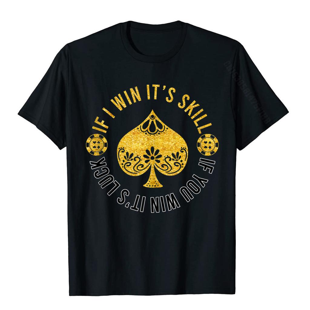 If I Win It's Skill Spade Funny Poker Card Player Gift Basic Top Cool Tees Cotton Adult Tshirts Cool Hip Hop