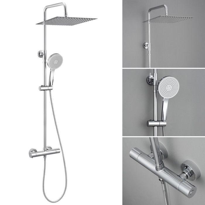 Shower Column - DERW - MAX - Thermostatic Mixer - 12-inch Overhead Shower - Stainless Steel