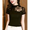 Lace Semi High Neck T-shirt for Women's Spring Summer Fashion Print Top Age Reducing Mesh Base Shirt Stylish Small Shirt T-Shirts Women’s