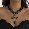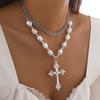 Punk Style Cross Necklace Dark Exaggerated Slightly Inlaid Imitation Pearl Multi-layer Stacking Jewelry