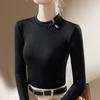 Round Neck Base Shirt for Women New Women's Retro Buckle Long-sleeved T-shirt Underwear Waist Top
